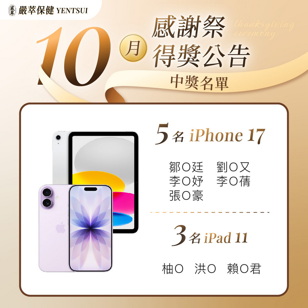 10月感謝祭 得獎公告